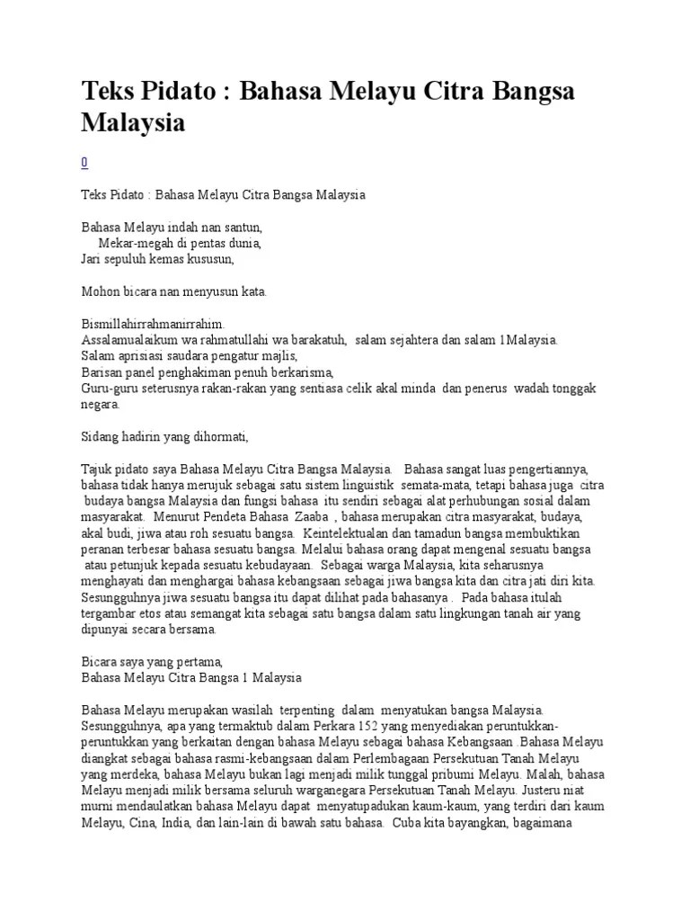 Berikut adalah teks syarahan pemenang pertandingan syarahan bahasa malaysia. Bahasa melayu pemangkin perpaduan nasional terima kasih saya ucapkan kepada yang dihormati saudara pengerusi majlis, para hakim yang arif lagi bijaksana, . Saya merupakan peserta pidato peringkat kebangsaan 2012 dari negeri. Bahasa melayu telah dinobatkansebagai bahasa kebangsaan sejak merdeka lagi . Perpaduan asas kecemerlangan negara berikut adalah teks syarahan pemenang. Contoh teks pidato bahasa melayu dunia belajar.